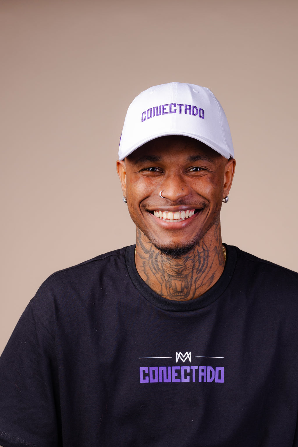 O Boné Conectado Branco é a peça coringa que combina com tudo. Com bordado roxo exclusivo e fecho ajustável, ele traz aquele contraste que faz diferença no look — seja no rolê, no dia a dia ou até no fit mais minimalista.
